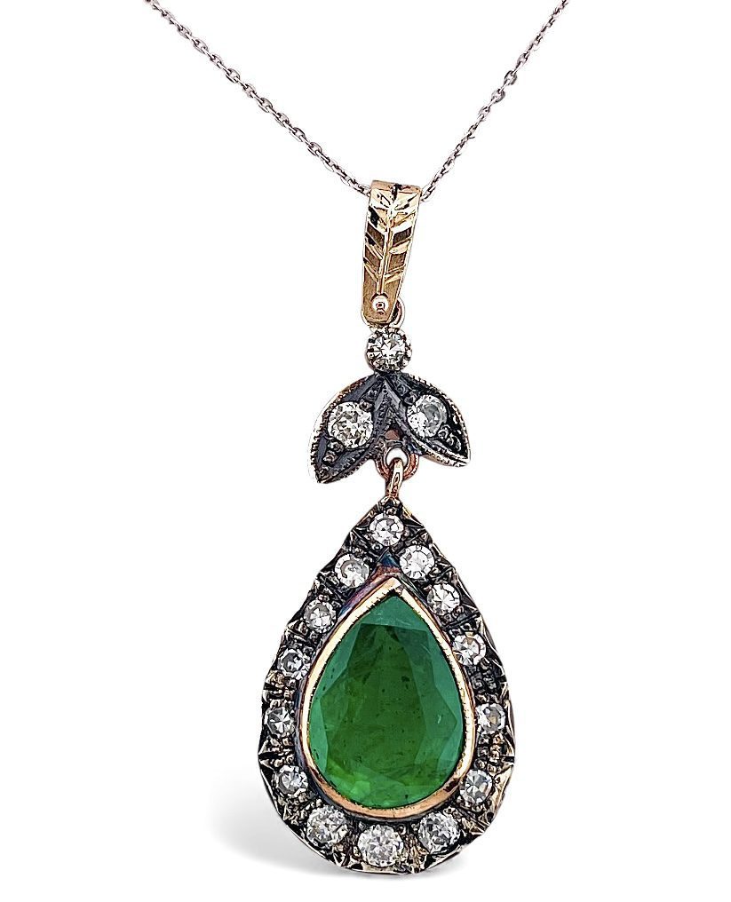 Collana con ciondolo fine 800 smeraldo e diamanti.