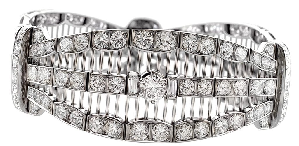 Bracciale Art decó 1940 in oro bianco 18kt e diamanti.