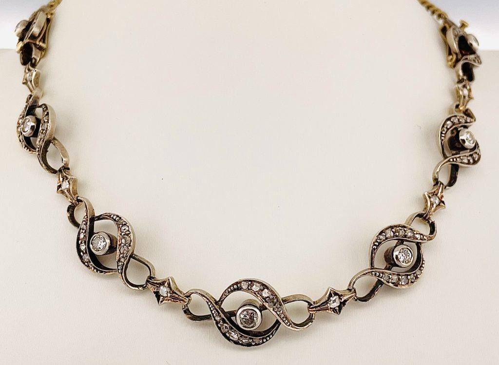 Collier antico Vittoriano in oro giallo 18 kt e argento.