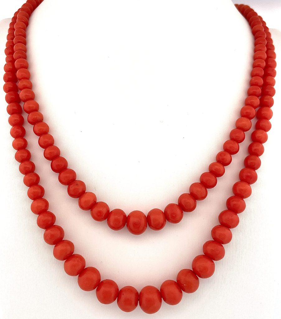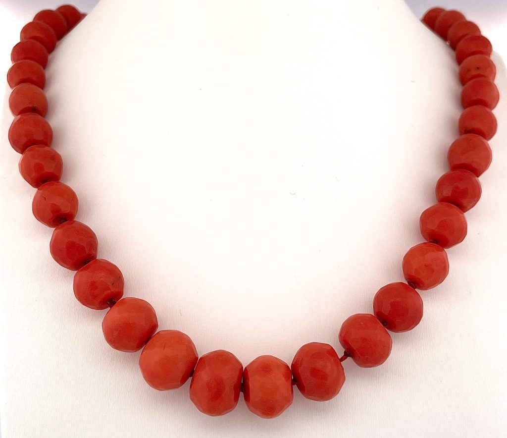 Collana antica fine 800 con corallo naturale mediterraneo grammo 82,50 da 13 mm a 7 mm in oro giallo 18kt.