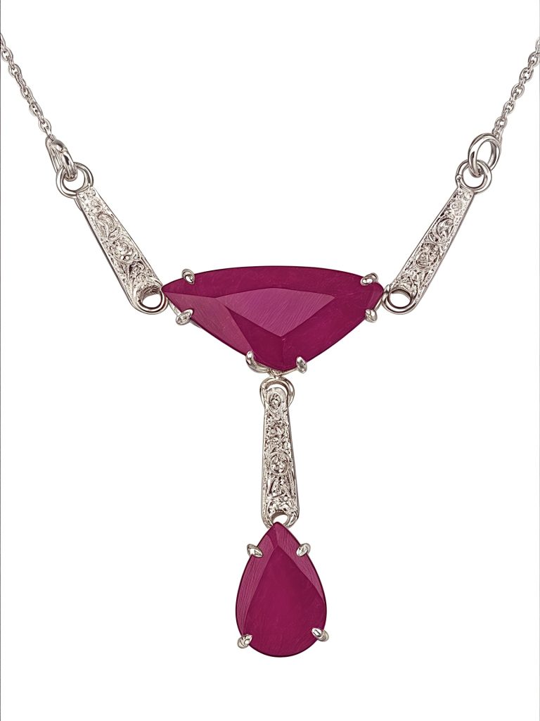 Collier in platino Art decò 1930 con rubini naturali 5.25 ct e diamanti.