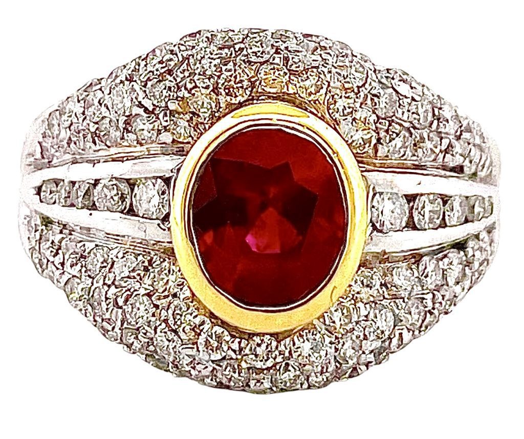 Anello con rubino Burma certificato IGN e diamanti in oro 18kt.