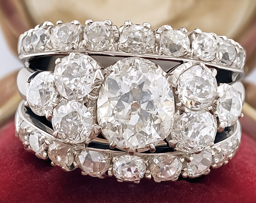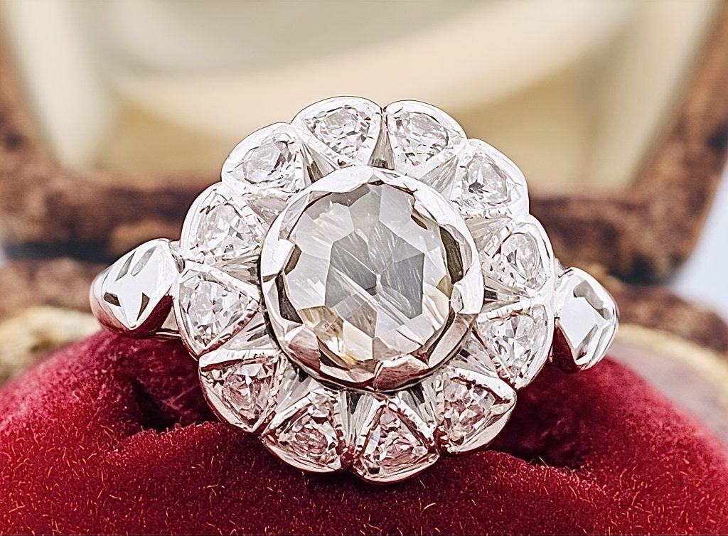 Anello a toppa Art Nouveau 1910 in platino e diamanti.