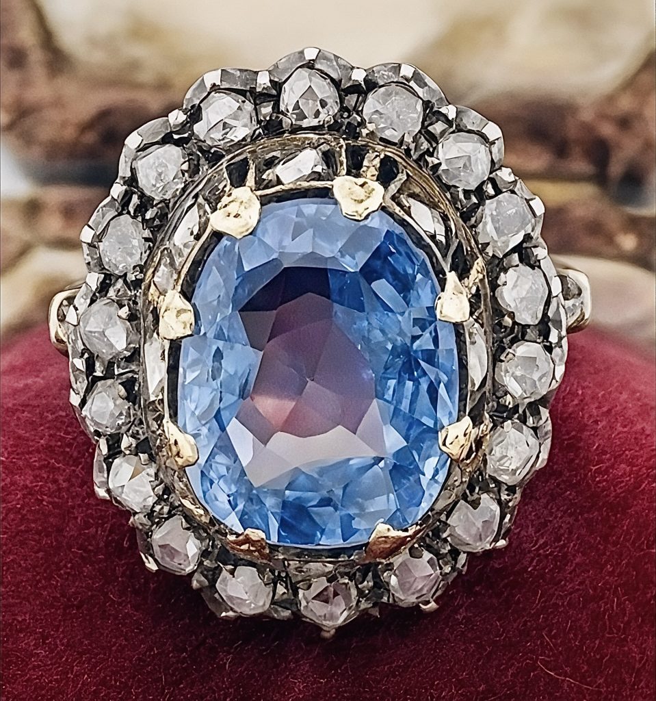 Anello antico autentico vittoriano della fine dell’800 con zaffiro Sri Lanka naturale certificato.