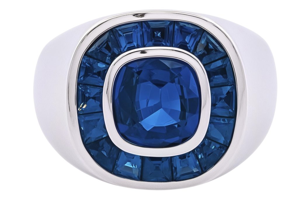 Anello con zaffiro Burma Royal Blue vintage anni 70 in platino.