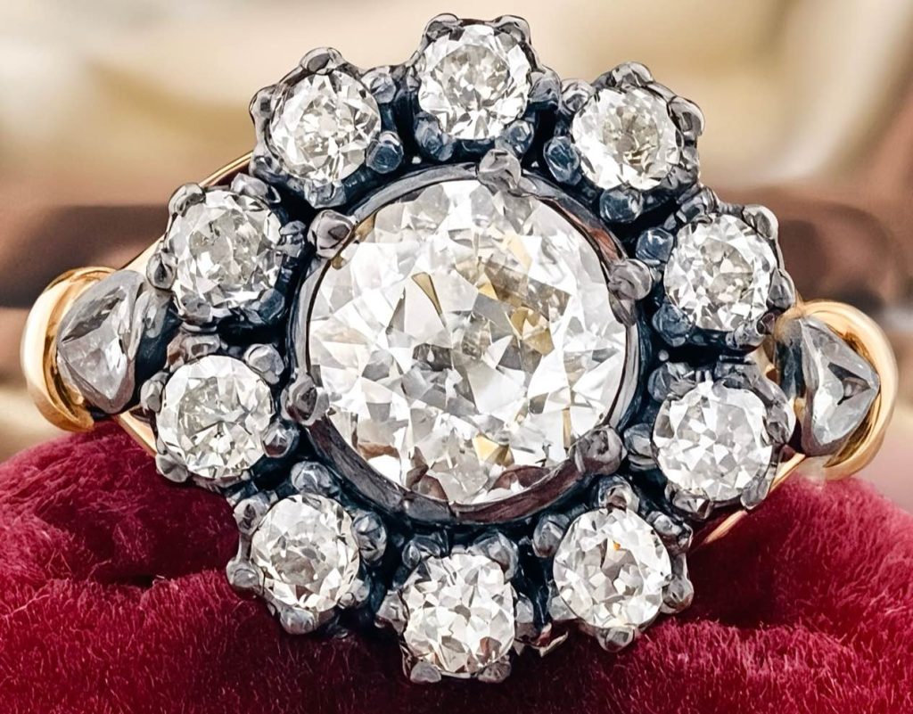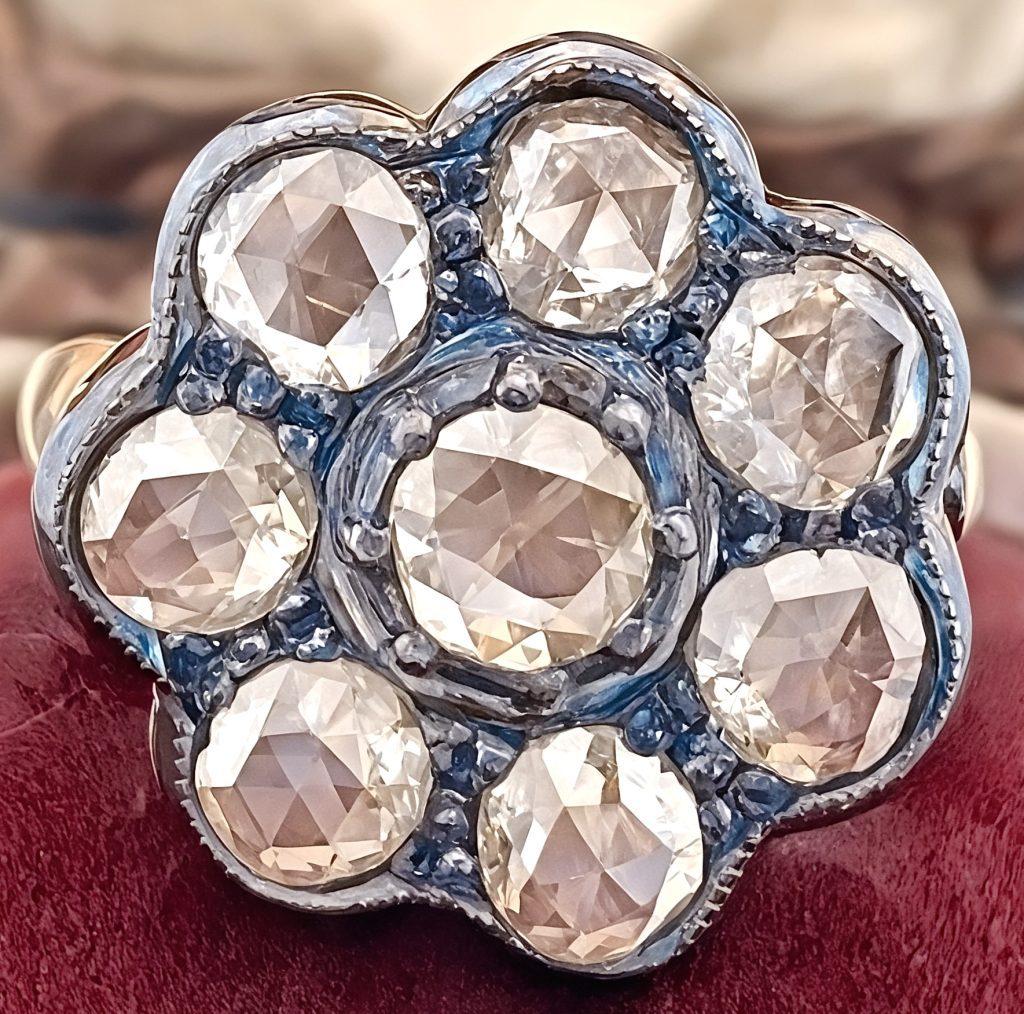Anello antico vittoriano periodo fine 1800 in oro giallo 18 kt e argento.