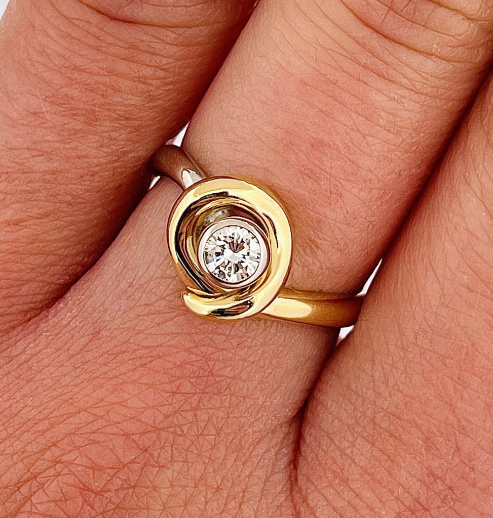 Anello solitario in oro bicolore 18kt.