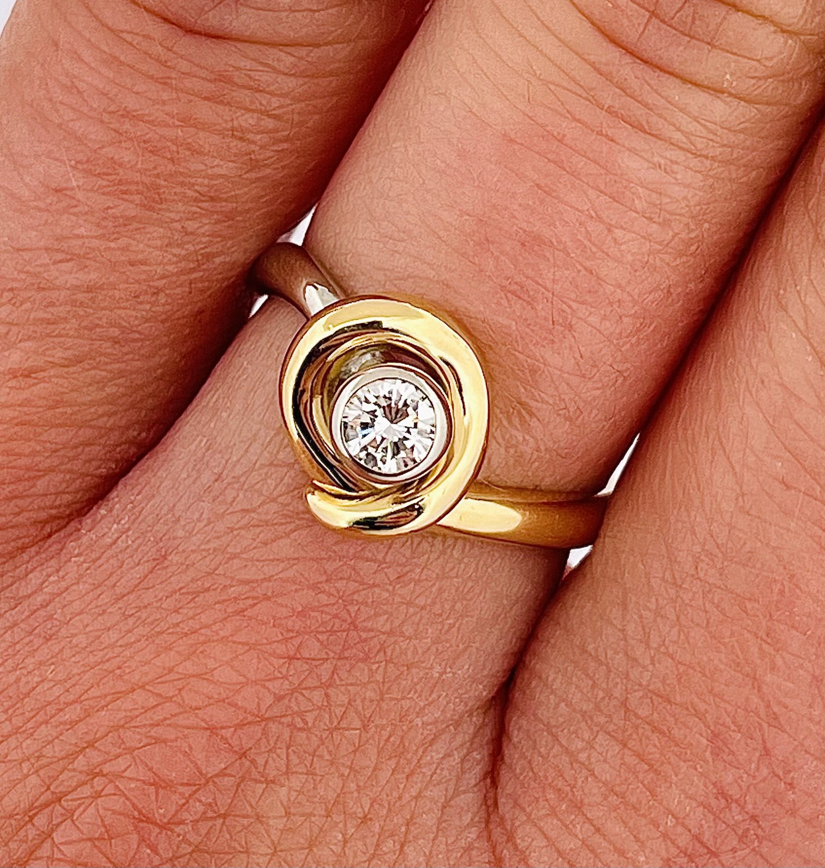 Anello solitario diamante 0.25ct oro bicolore 18kt.